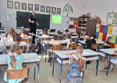 Предавања је одржао полицајац задужен за рад у локалној заједници, Милан Радомировић, који је кроз занимљиву презентацију и разговор истакао значај ове области и приближио је ученицима на њима близак и разумљив начин.