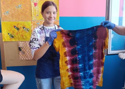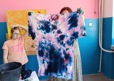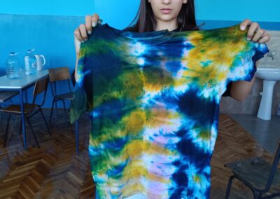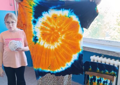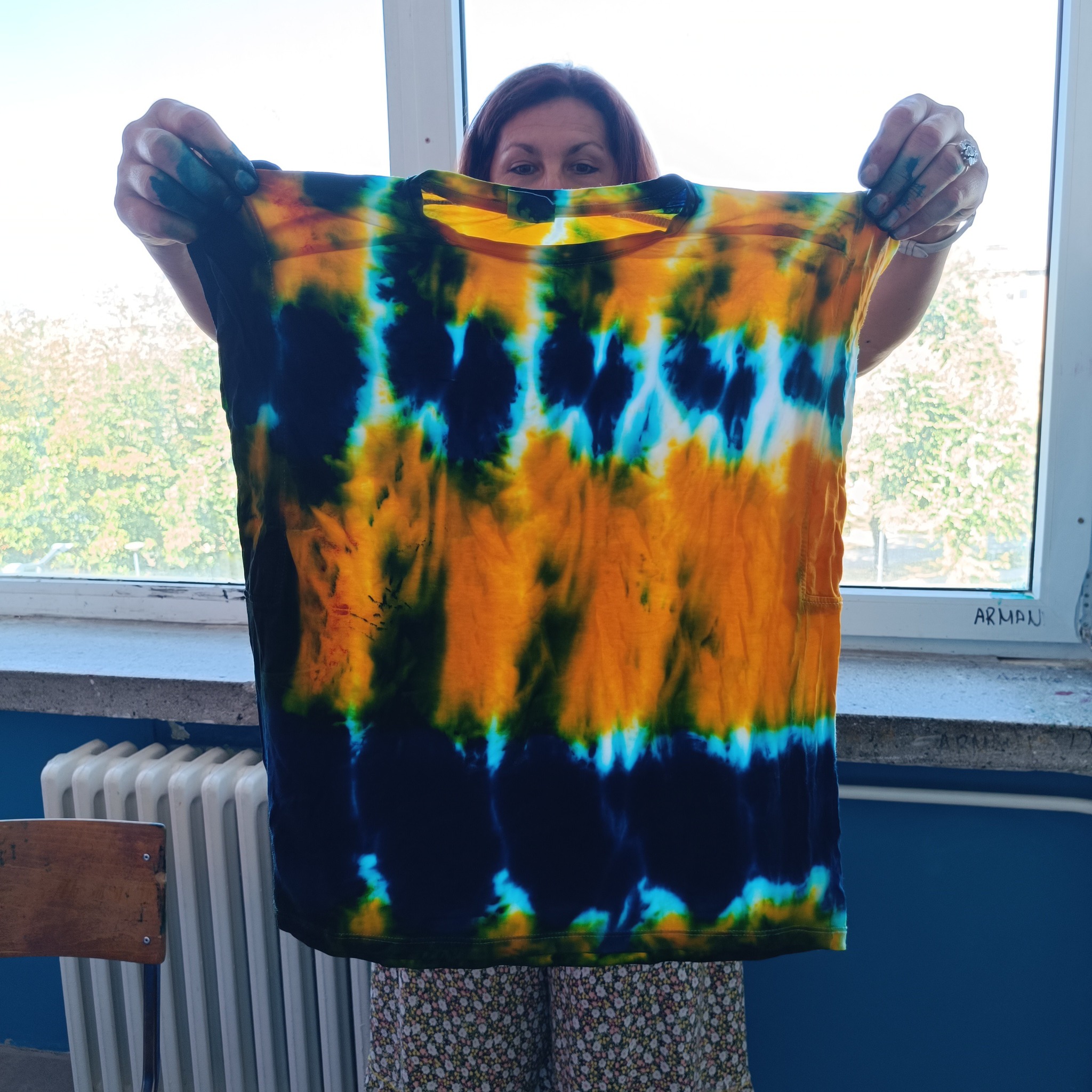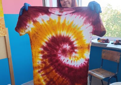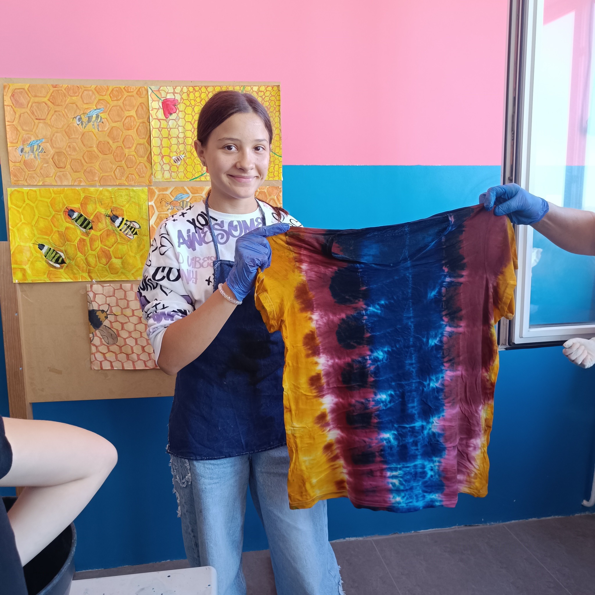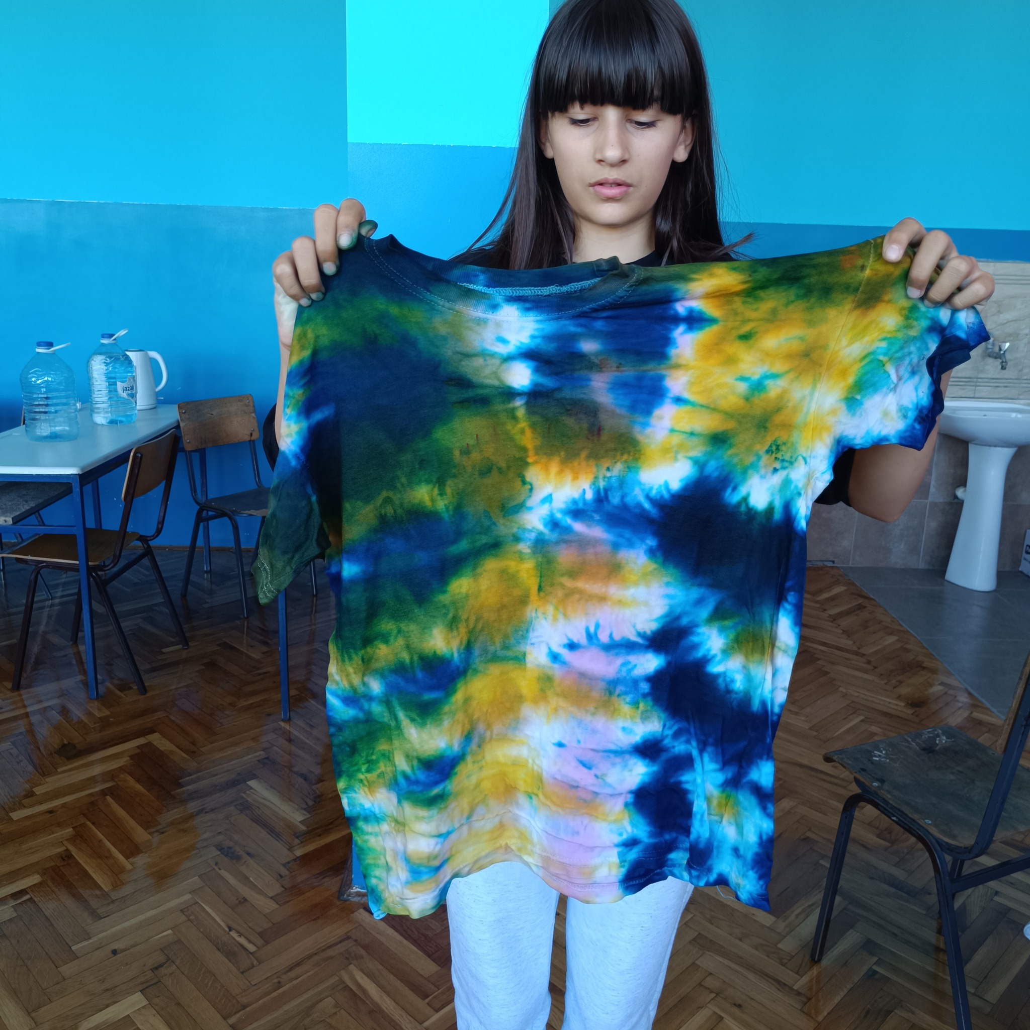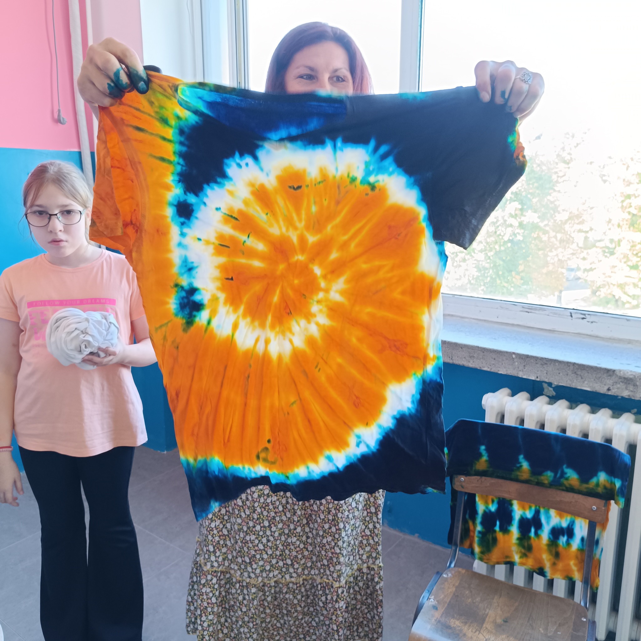 У понедељак, 22. септембра 2025. године, ученици шестог разреда са наставницом ликовне културе Весном Мијин упустили су се у занимљиву радионицу сликања и фарбања текстила у техници батик. Радили су са основним и изведеним бојама, стрпљиво ишчекујући како ће изгледати шаре на њиховим мајицама после бојења. Одушeвљење није изостало – настали су маштовити и јединствени радови који ће ученицима остати као лепа успомена и подсећање на креативно дружење.