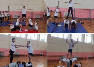 Током часова физичког васпитања ученици виших разреда надметали су се у штафетној игри „Икс-Окс“, „Седећем фудбалу“ и Акро јоги, која комбинује јогу и акробатику стварајући осећај партнерства и поверења, кроз подизање и подржавање других.