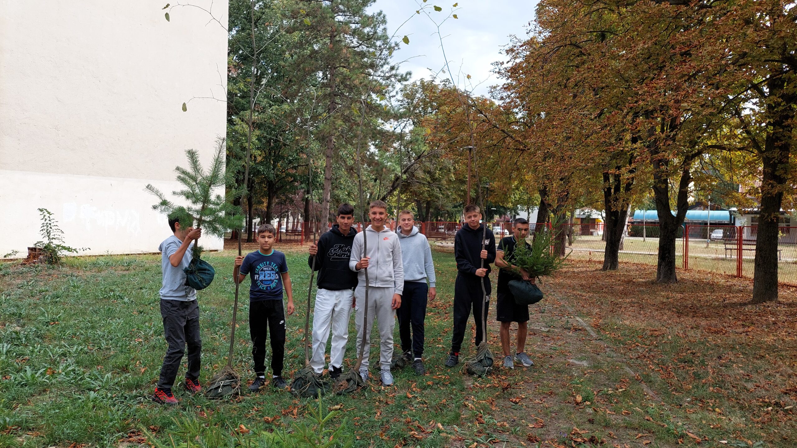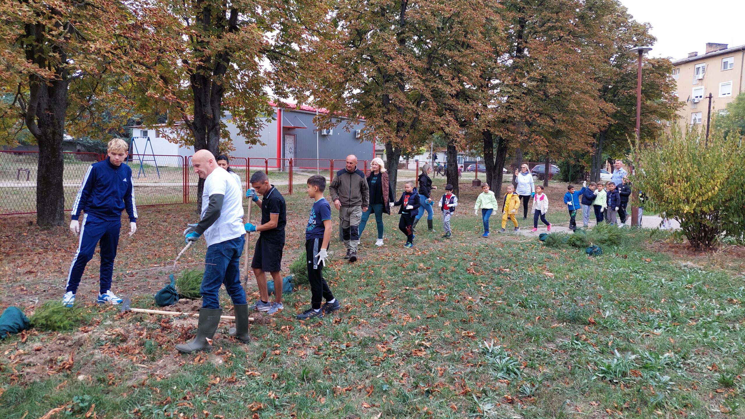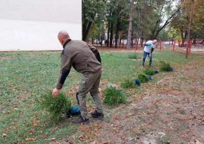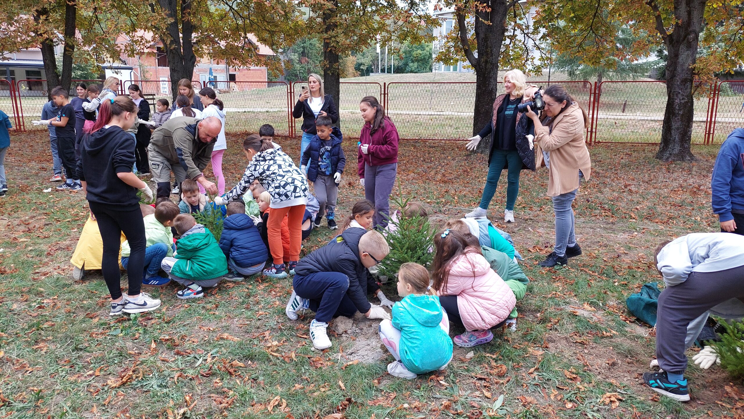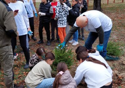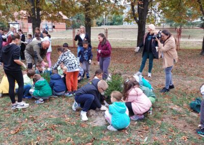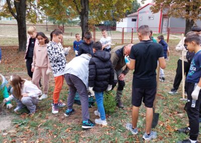 У акцији пошумљавања школског дворишта учествовали су ученици 1-1, 5-2 и 5-3 одељења, уз подршку своје учитељице Љиљане Добријевић, и наставница: Татјане Сакан, Мајде Петрашевић, Светлане Станковић и Јевгеније Којић. Заједничким радом и добром вољом ученици су, уз помоћ одраслих, засадили нова стабла која ће годинама красити школско двориште.
