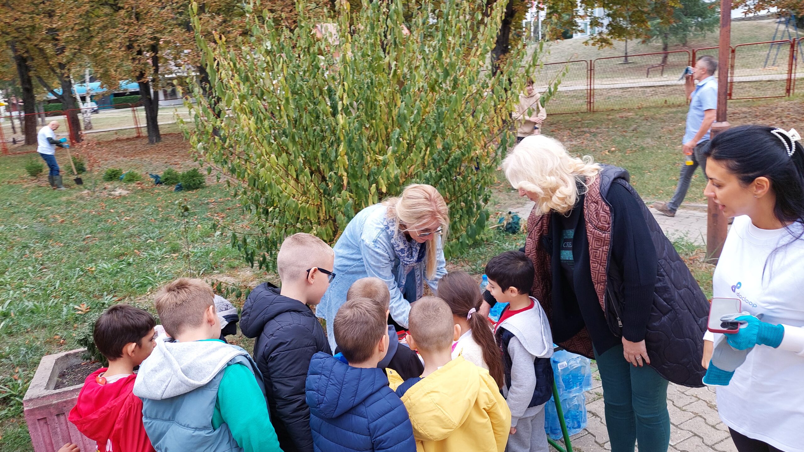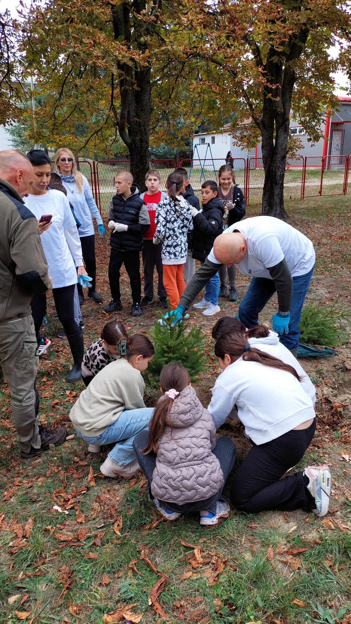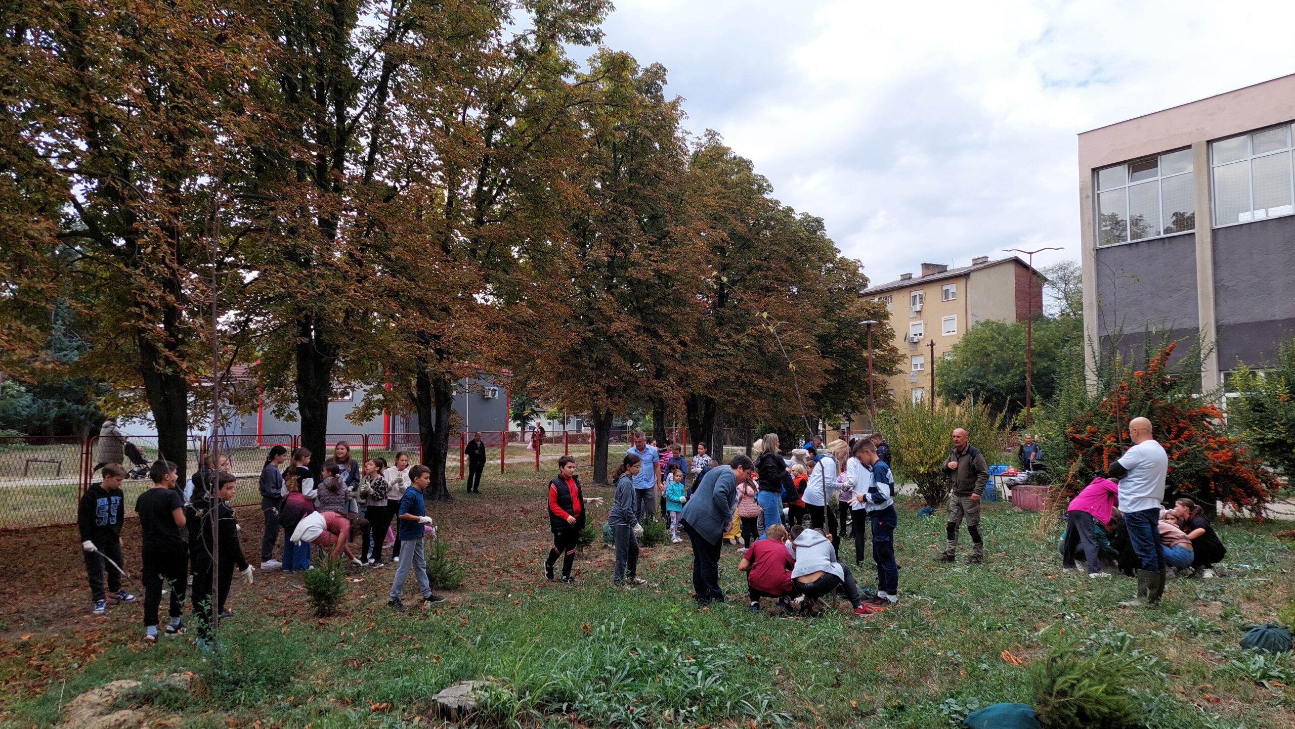 У акцији пошумљавања школског дворишта учествовали су ученици 1-1, 5-2 и 5-3 одељења, уз подршку своје учитељице Љиљане Добријевић, и наставница: Татјане Сакан, Мајде Петрашевић, Светлане Станковић и Јевгеније Којић. Заједничким радом и добром вољом ученици су, уз помоћ одраслих, засадили нова стабла која ће годинама красити школско двориште.