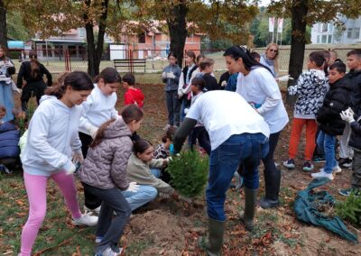 У среду, 1. октобра 2025. године, двориште наше школе постало је богатије за нове саднице – посађено је двадесет црних борова и пет липа. Ова лепа акција реализована је захваљујући компанији DOСLOOP d.o.o. из Београда, у сарадњи са Јавним предузећем ,,Национални парк Фрушка гора“, на иницијативу госпође Маријете Дир, мајке наших ученика и велике активисткиње у бројним еколошким и школским подухватима.