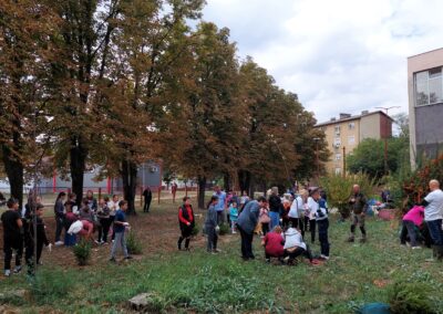 Маријета Дир је позната по својој несебичној енергији и ангажовању – од сакупљања лименки и набавке клупа за школско двориште, до организације излета и разноврсних активности које обогаћују живот наших ученика. Њена иницијатива и овога пута окупила је ученике и наставнике у заједничком циљу – да двориште „мале“ и „велике“ школе буде зеленије и лепше место.