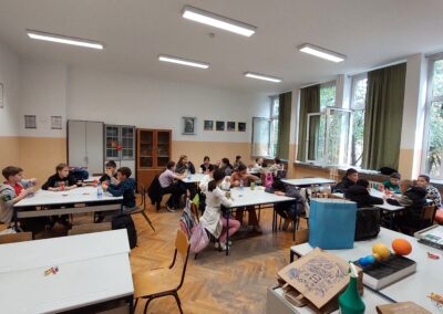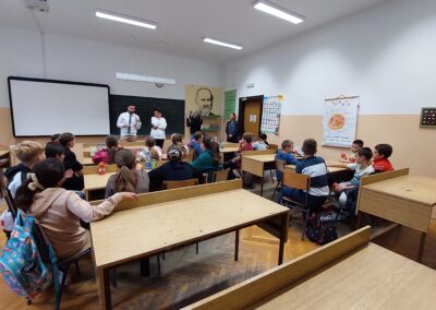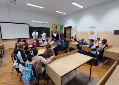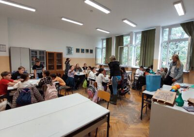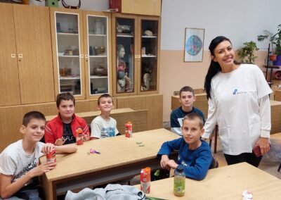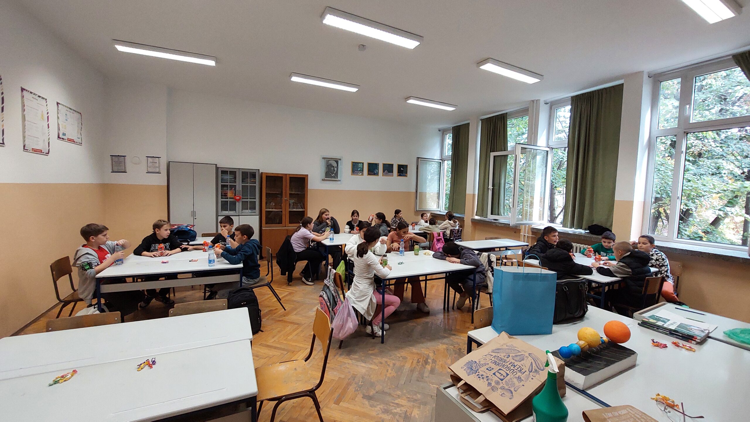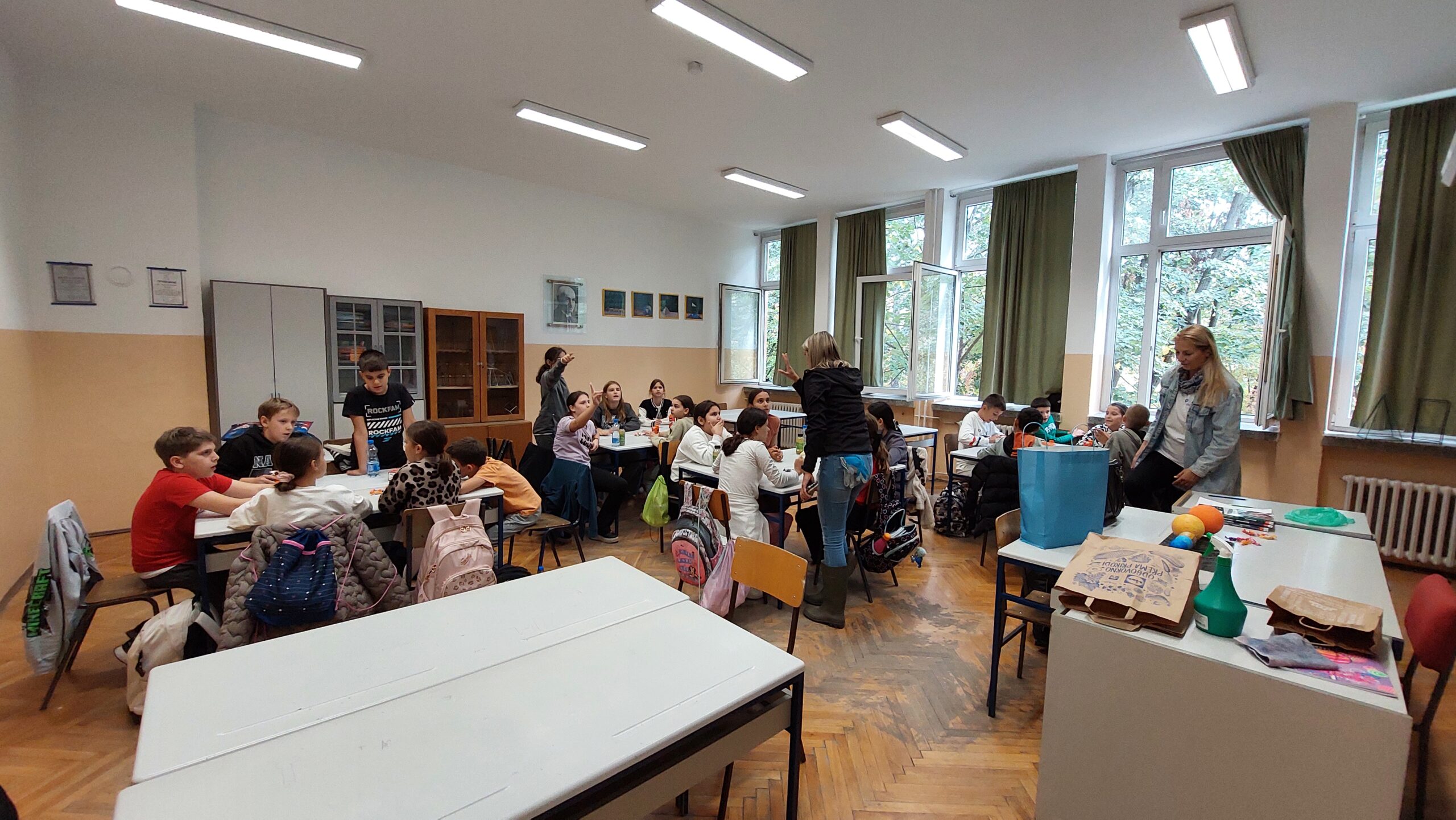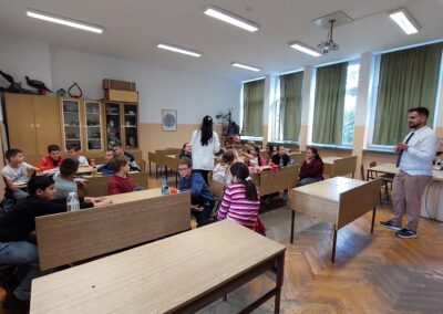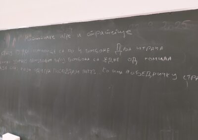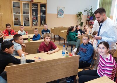 Након пошумљавања, у ком су наши вредни ученици заиста уживали, и након освежења које је припремила компанија DOCLOOP, за ученике петог разреда организована је веома занимљива „Математичка радионица“. Радионицу је водио математичар из Врдника, Александар Симић, а ученици су имали прилику да на нов и занимљив начин увежбавају своја знања.