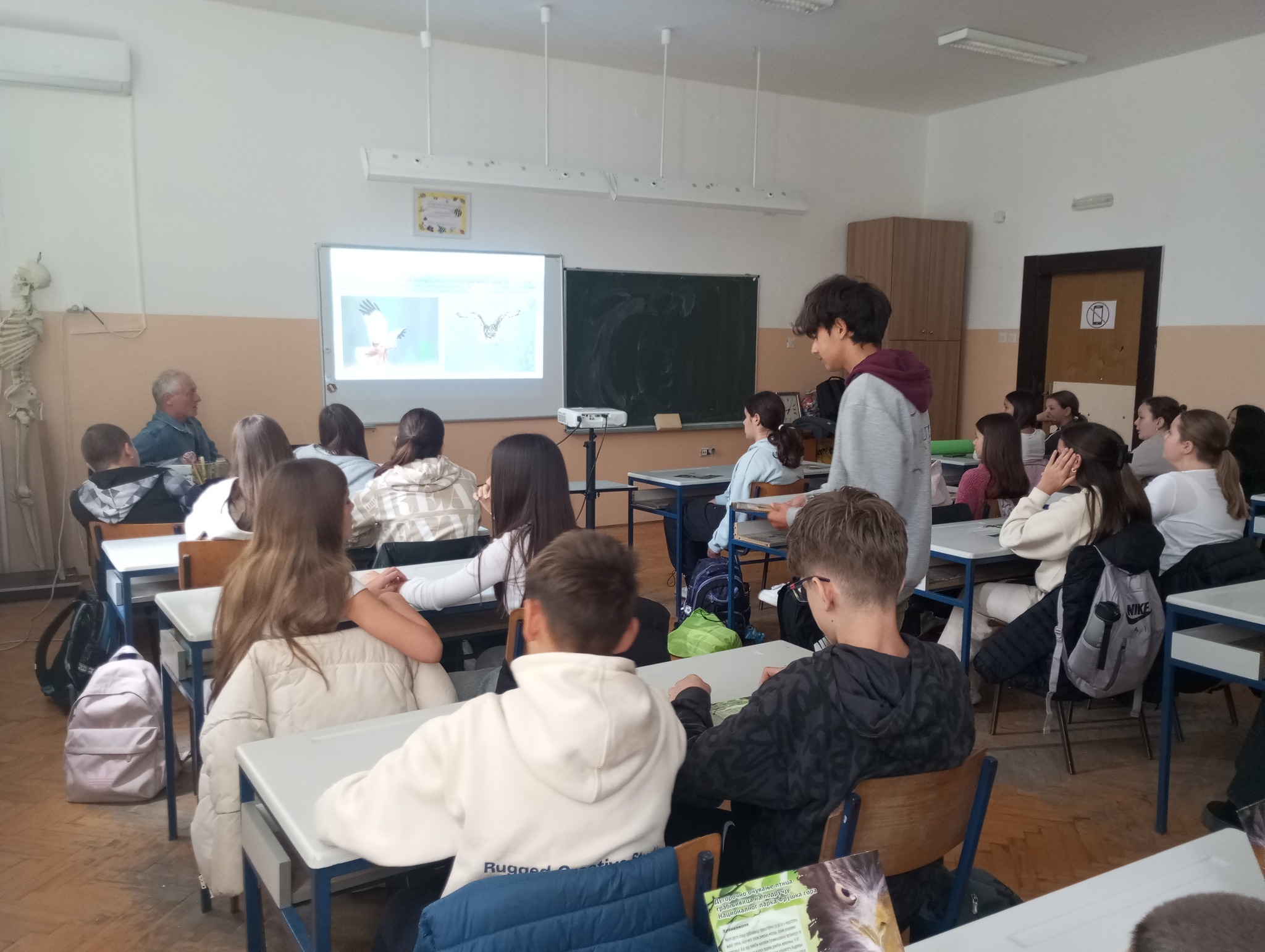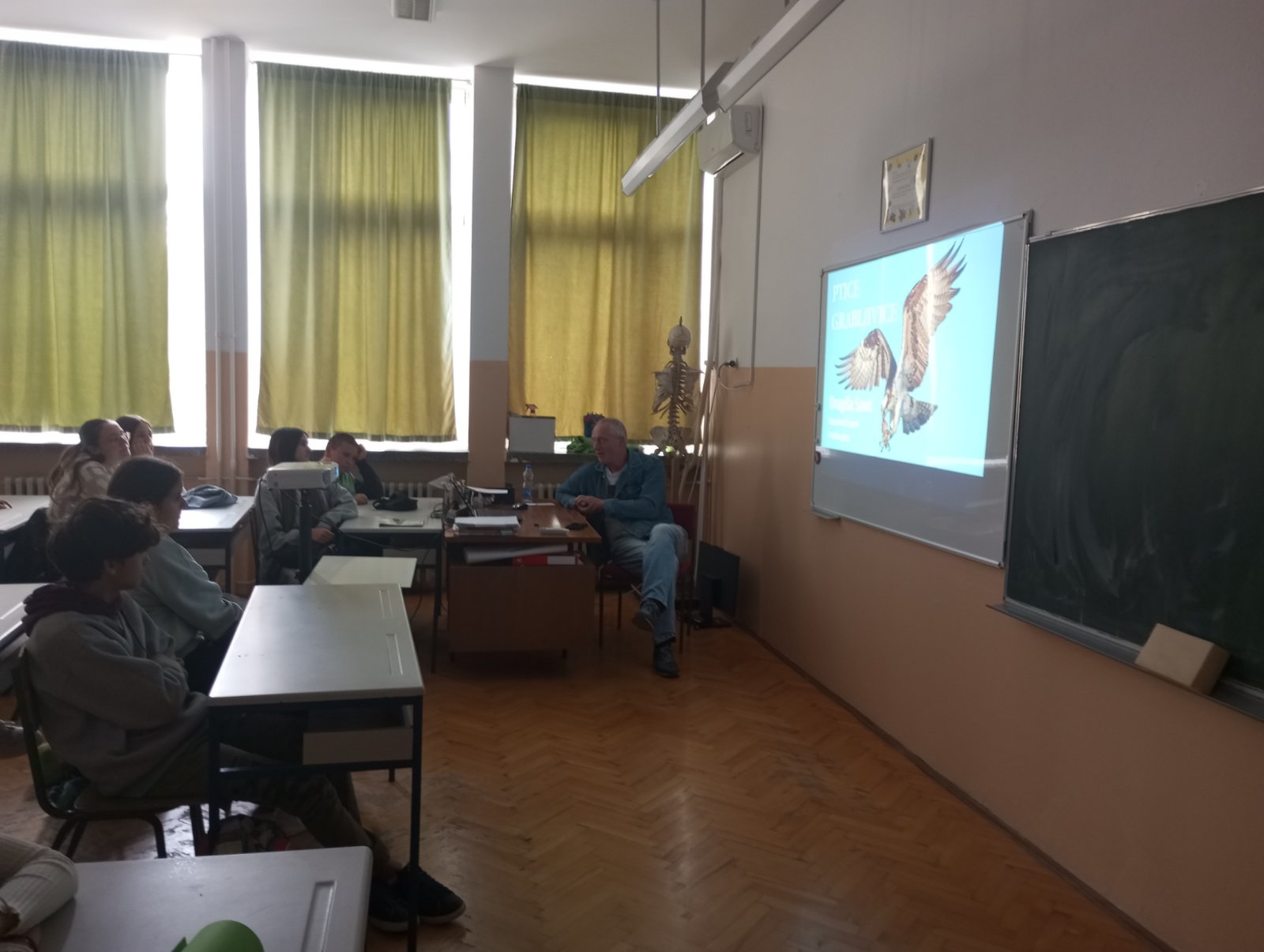 У среду, 1.10.2025. године у 12.30 у учионици биологије је одржано предавање о птицама грабљивицама које живе у Србији. Предавање је одржао биолог Драгиша Савић испред НП Фрушка гора . Предавању су присуствовали заинтересовани ученици 6. и 7. разреда.