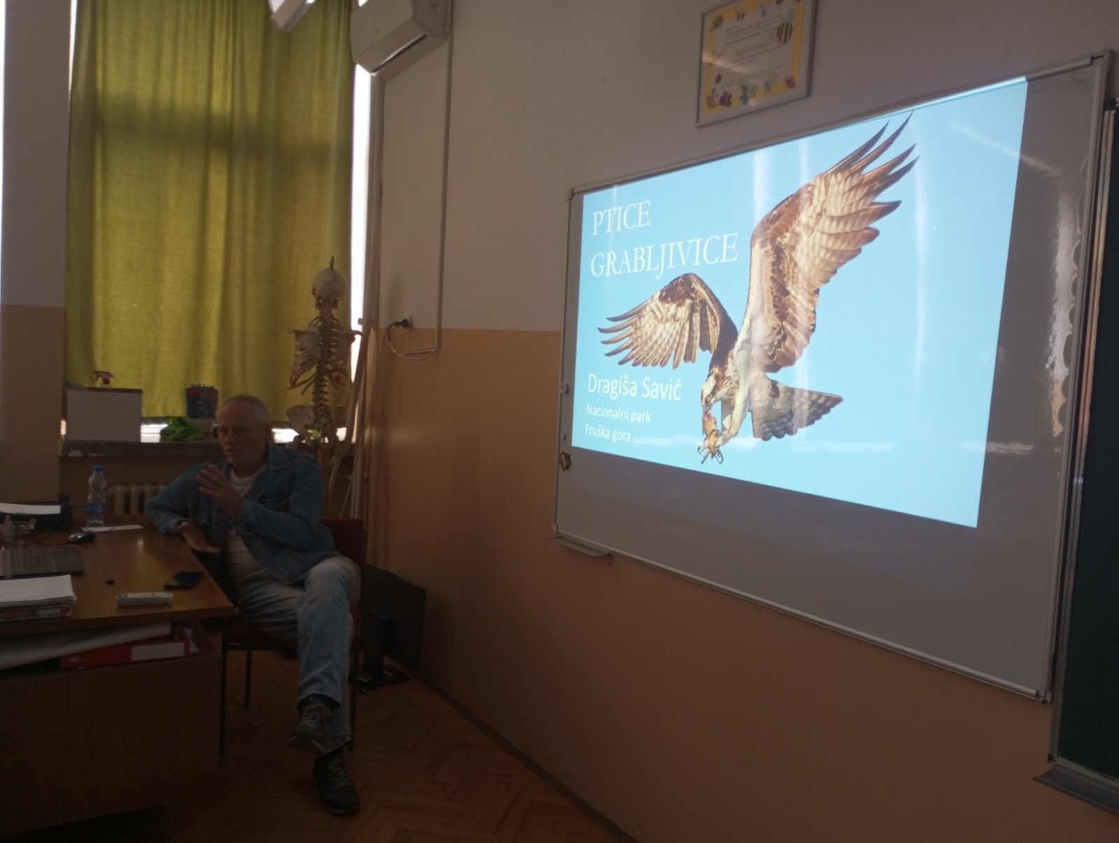 Драгиша је ученике упознао са врстама које настањују Србију и нагласио је које се грабљивице могу срести на Фрушкој гори. Причао је о адаптацијама, навикама у исхрани као и еколошком значају птица грабљивица за екосистем.