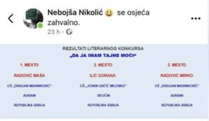 Удружење ,,Витезови осмеха” из Новог Сада организовало је од 11.6. до 11.9.2025. године, Литерарни конкурс за најлепшу песму о алтруизму и филантропији под називом ,,Да ја имам тајне моћи“.