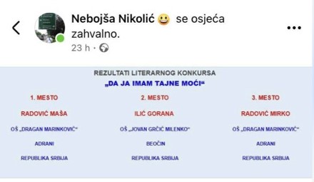 - Радовић Маша, ОШ ,,Драган Маринковић”, Адрани