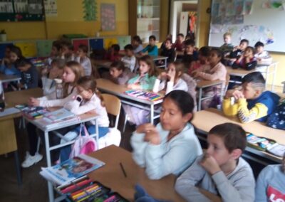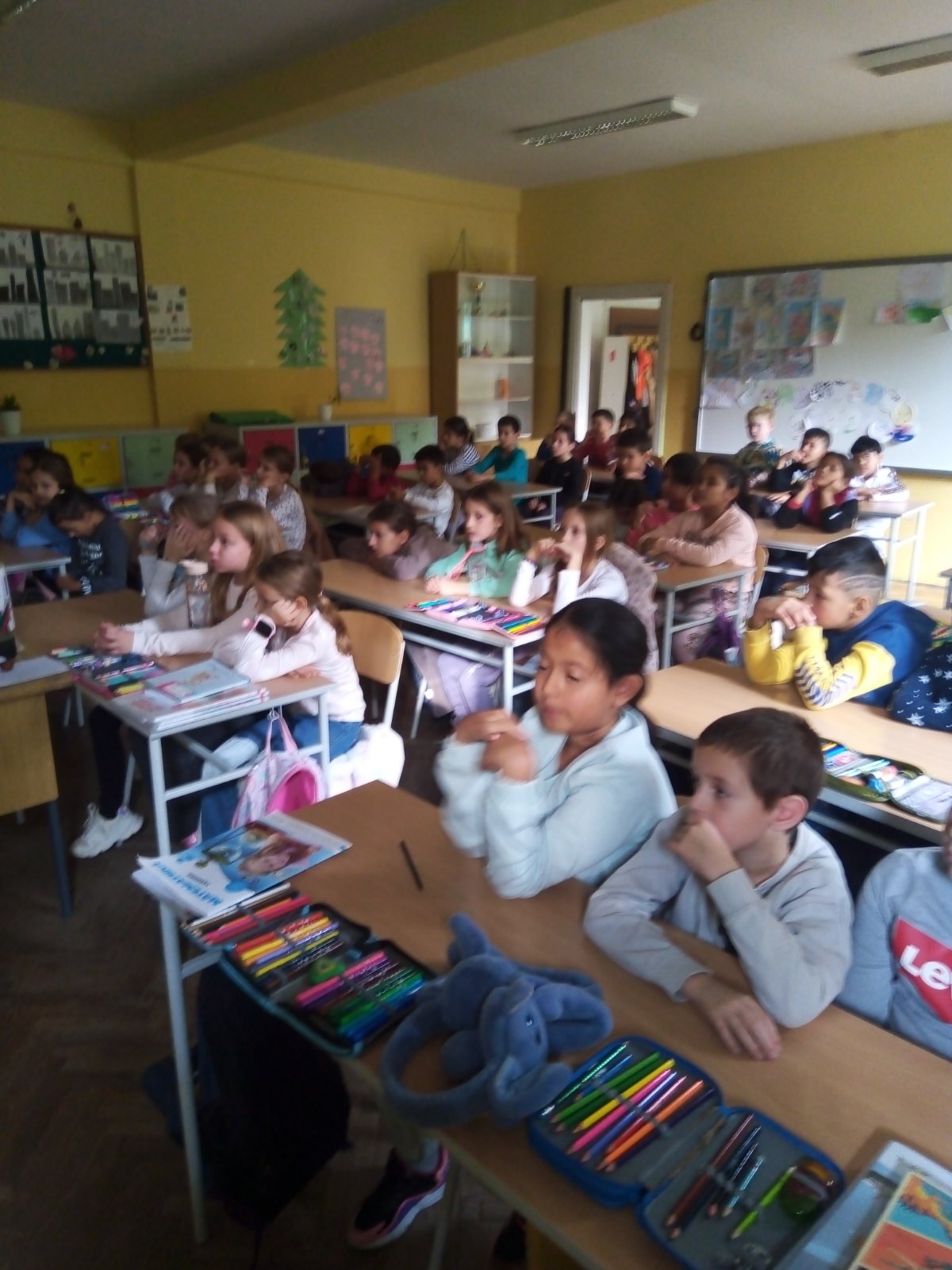*на часу енглеског језика смо завршили игру ,,Тајни пријатељ” где су ђаци са другарима из других одељења разменили цртеже са лепим порукама о другарству ,