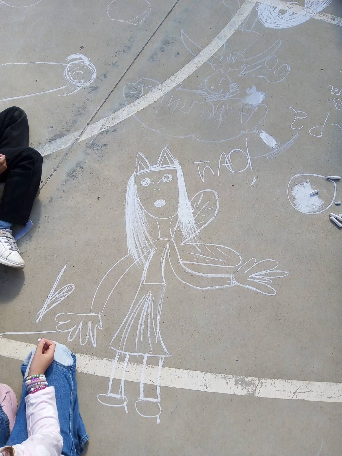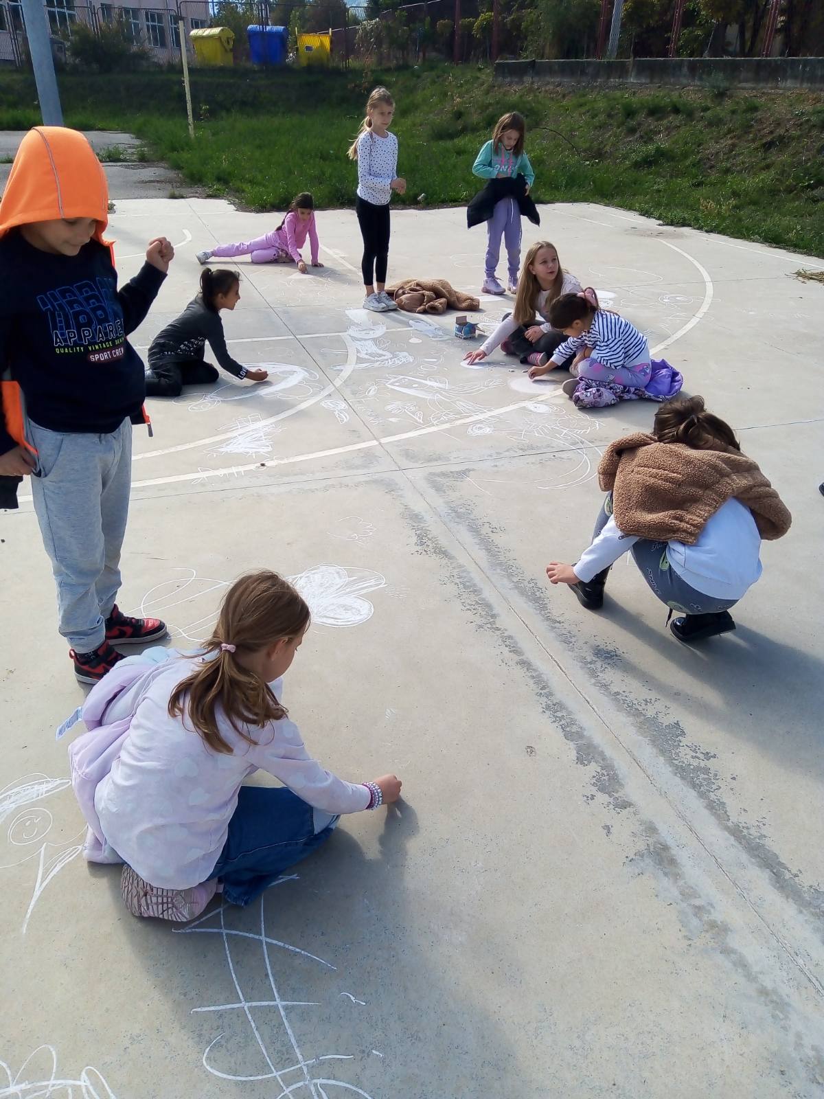 *цртање на тему,, Моја машта може свашта” на терену у школском дворишту,