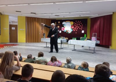 Мађионичар је извео програм прилагођен најмлађима – предшколцима и ученицима првог и другог разреда. Током наступа, деца су са одушевљењем, радозналошћу и пуно смеха пратила магичне трикове, а многи су се и сами нашли у улози мађионичаревих помоћника.