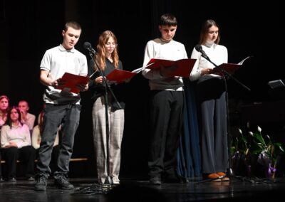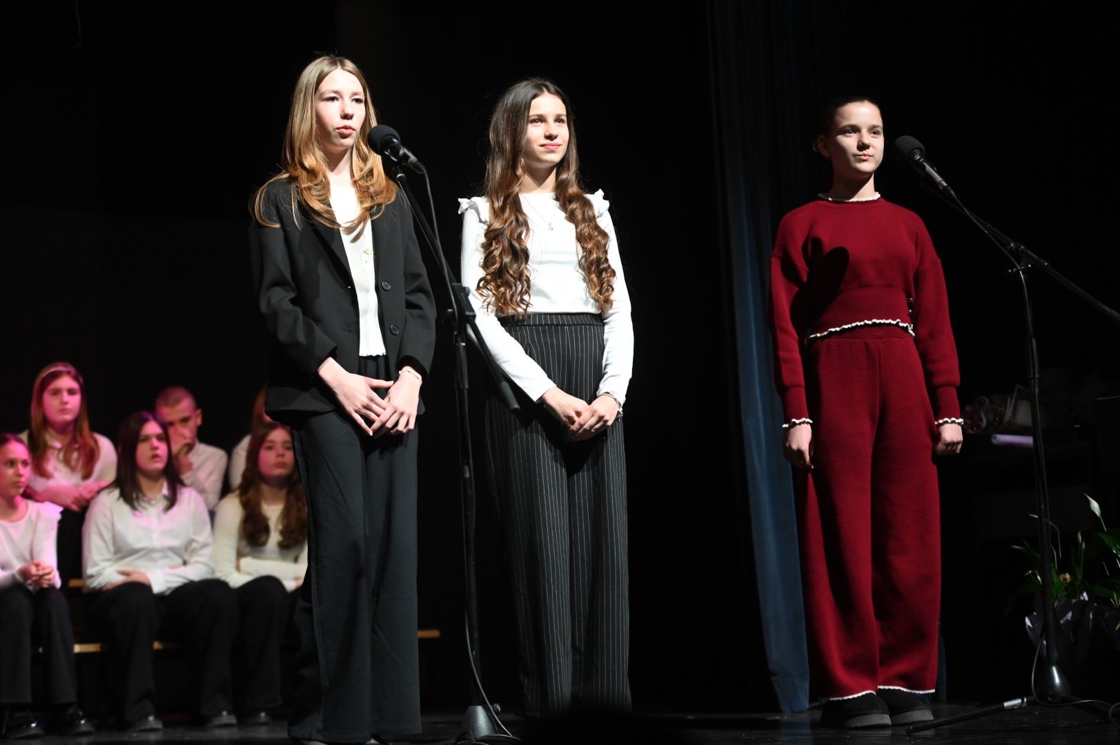 Посебну захвалност упућујемо наставницама српског језика Соњи Прекогачић и Сенки Стојнић и наставници музичке културе Весни Гојић које су са много пажње и труда осмислиле и реализовале програм данашње свечаности у коме су лепота, традиција, образовање и младост биле најлепше вредности и поруке са сцене.
