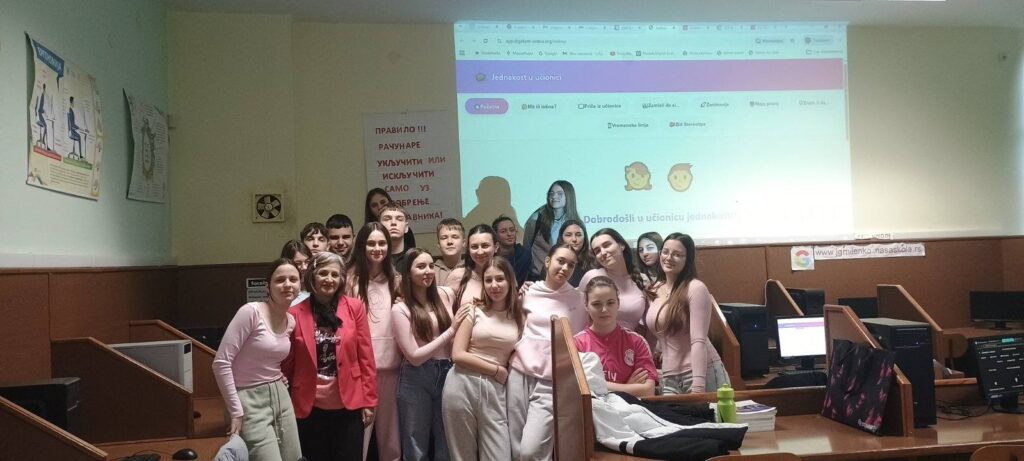 У одељењу 8-5 на часу Информатике и рачунарства и Технике и технологије реализована је активност „Дан ружичастих мајици“. Пријавом школе на сајт ДИГИДЕМ СРБИЈА ученици су учествовали у креирању порука подршке против свих облика насиља. Поруке су остале забележене на ружичастом зиду.