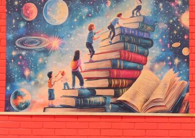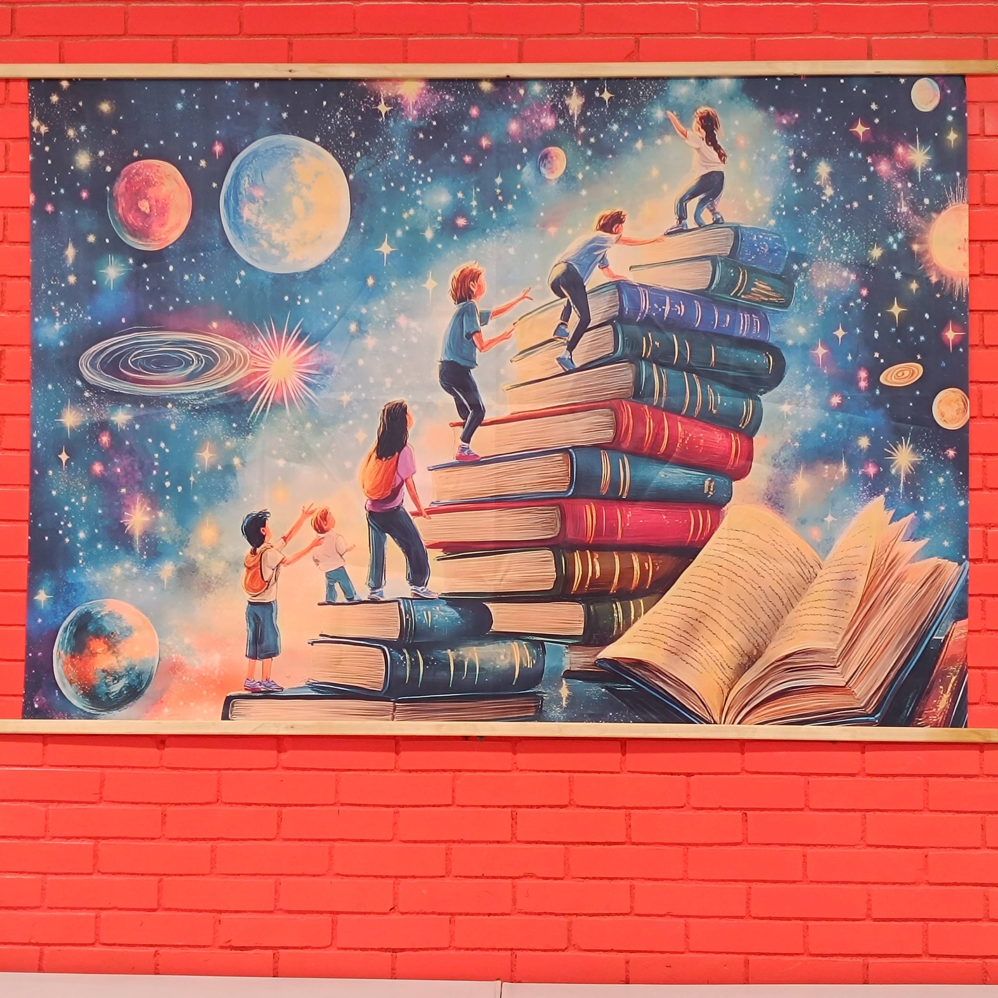 Ученици 6-3 одељења, заједно са својим одељенским старешином, Соњом Андрић, улепшали су зид поред своје учионице, на другом спрату. Постављен је леп постер који би нам могао поручити да ћемо читањем и учењем, корак по корак, књигу по књигу, сигурно стићи до звезда.