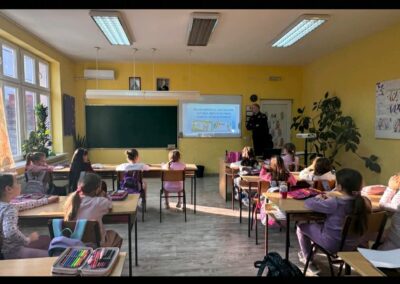 У првим разредима наше школе, одржано је предавање полиције на тему „БЕЗБЕДНОСТ ДЕЦЕ У САОБРАЋАЈУ“ од 2.3-4.3.2026.